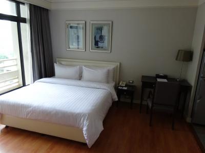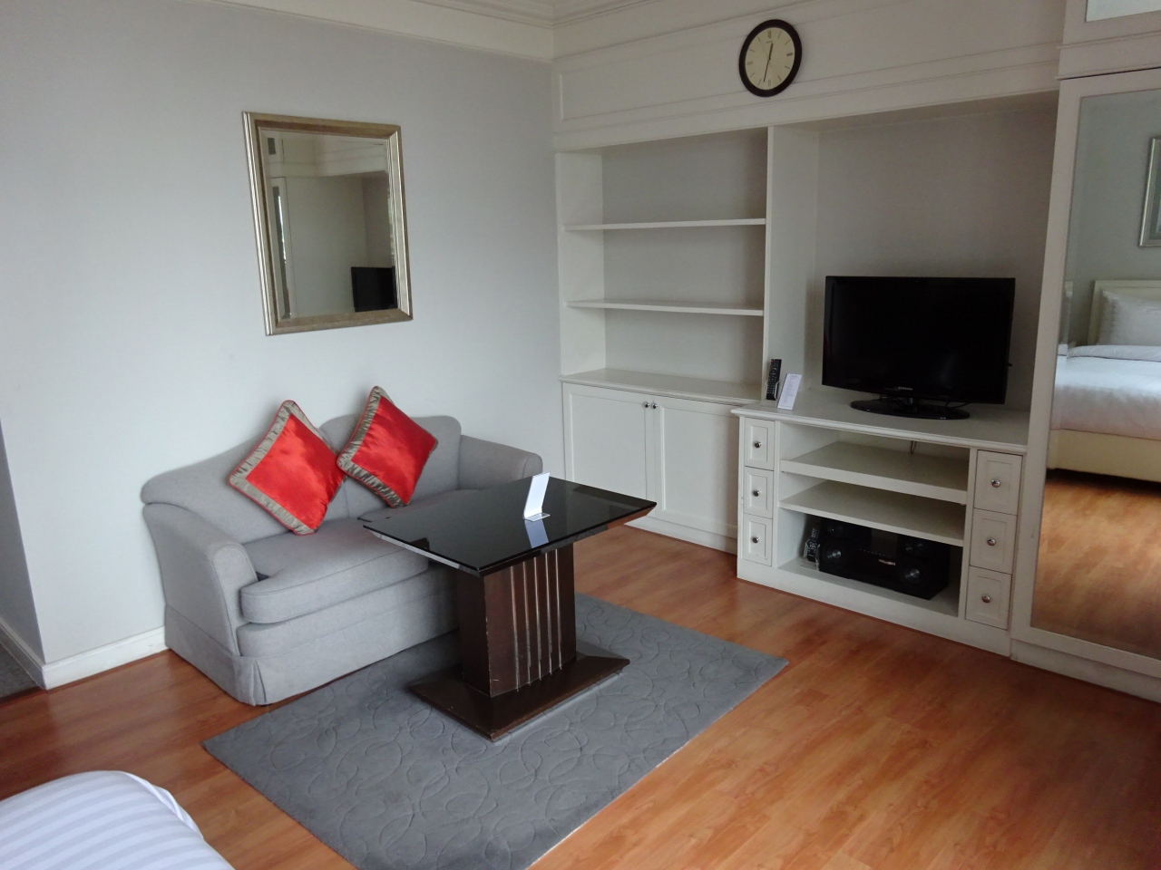 ランススアン通りの中程に建つサービスアパートメントですが,ロビーや部屋の造りからは高級感が味わえます。