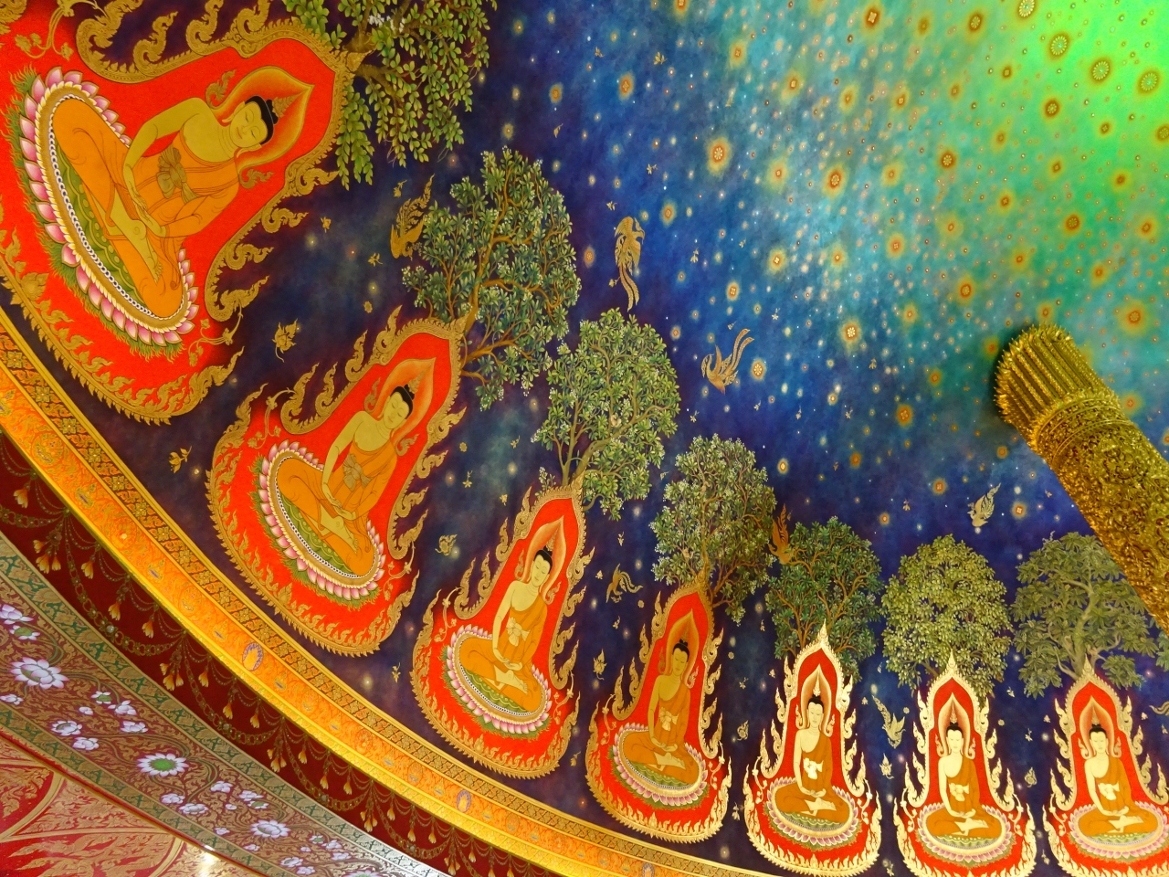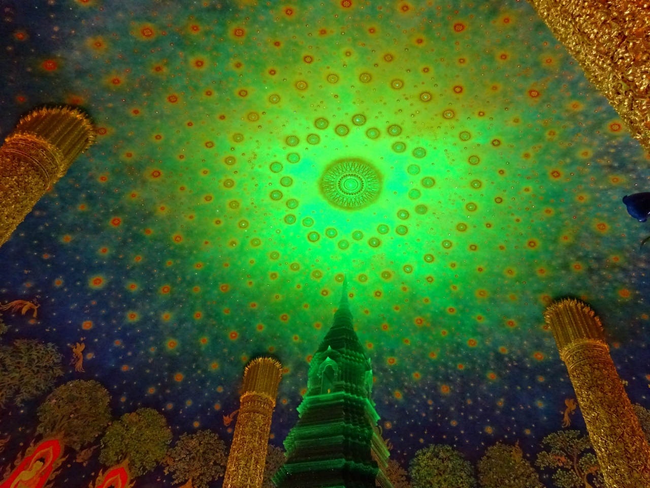 宇宙の広がりを表すような天井画で知られる「ワット・パクナム」に行ってきました。…タイマッサージが旅の目的になっていますが,久しぶりに観光してみました。