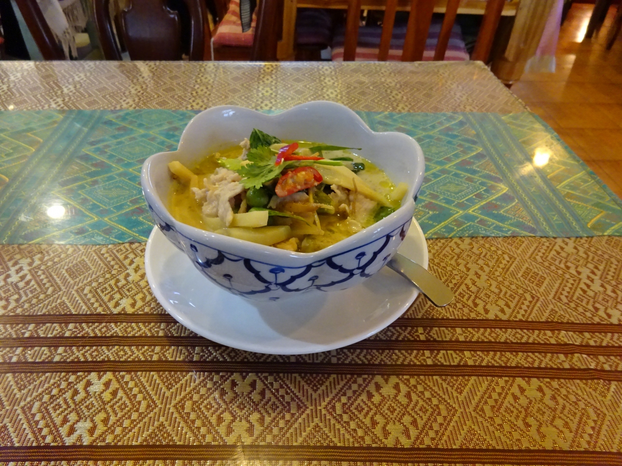 2年前はマッサマン・カレーを食べに来たのですが,今回はグリーン・カレーにしてみました。…色的には緑と言うよりも,黄色っぽい感じでした。