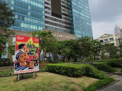 美しい建物の内部には入れないので外観を眺めるだけになりますが,地下鉄の建設に伴ってグエンフエ通りが改修され,目の前に立つホーチミン像の周辺が公園のように整備されたこともあって絶好の撮影スポットになっています。
