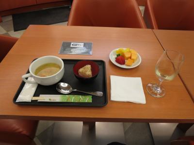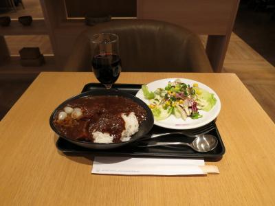 こちらは眺望がなく,とりあえずサクララウンジの飲食を楽しむ場所という感じでしょうか? 飲食の揃え方は,JALカレーも含めてターミナル際のラウンジと同じでした。
