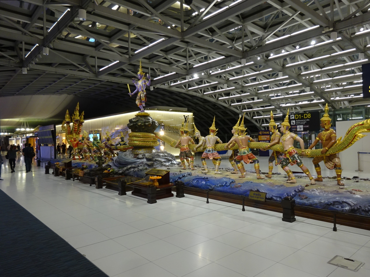 空港の出発ロビーには,12体の大鬼さんが列んでいます。