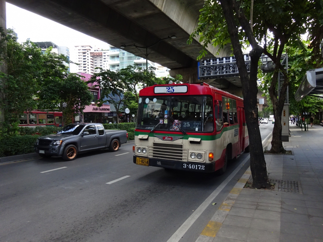 スクムビット通りのホテルに宿泊したので,ラーチャダムリ通りのビッグCの前からアソークとプロンポンの中程まで利用したり,ホテルの前からナショナル・スタジアム前まで8THB(=32円),エアコン無しのバスでも走り出すと窓から風が入って涼しい感じがしました。… エアコンバスは,段階的な距離制で13THBからになっていますが,BTSやMRTに比べてかなり安いです。