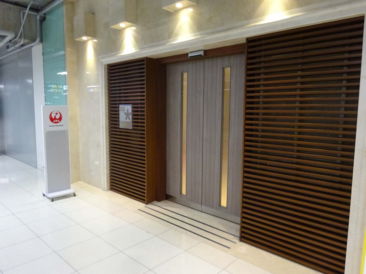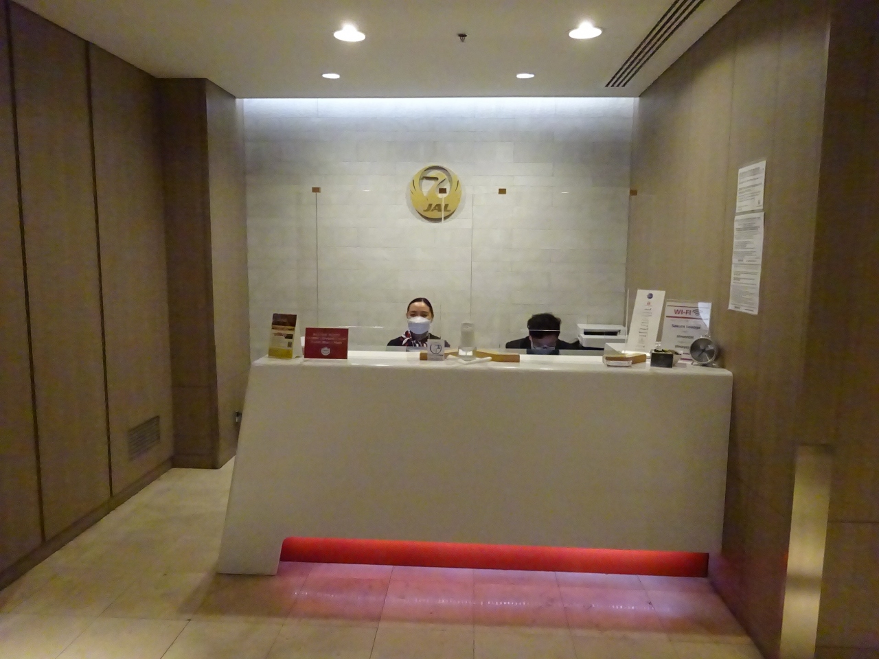 JALのカウンターのファーストクラスの列の1番に列んで手続きを行い,出国手続きも順調に済んだので,サクララウンジにはほぼ1番で到着しました。