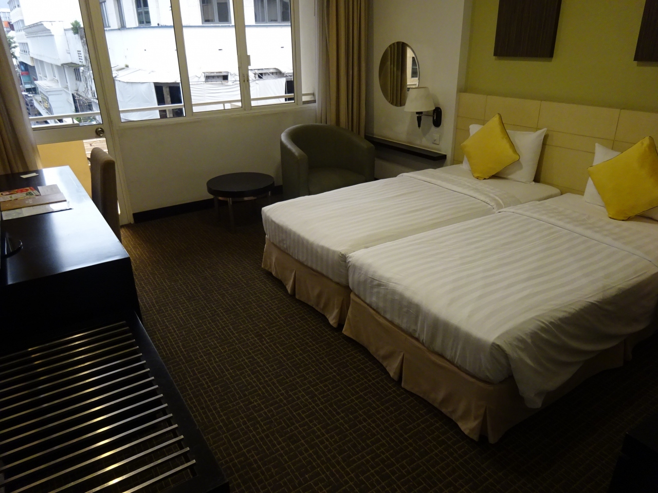 今まで2回は窓無しに近い部屋だったのですが,今回は眺望を求めてシティビューの部屋にしてみました。… シェラトンホテルの入り口があるドンユー通りが見渡せる大変良い眺めでした。