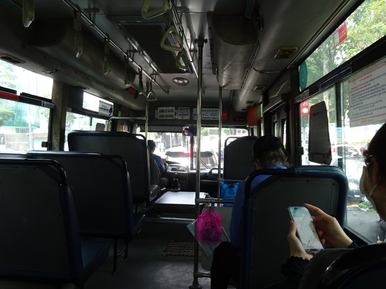 152番バスはベンタイン市場前のターミナルを通過して更に先まで行きますが,空港を出た後は完全に市内を走る路線バスという感じで,地元の人の乗り降りが多かったです。料金は5kVND(=30円)ですが,スーツケースがあると一人分が追加になります。