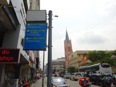 以前はタクシーで出掛けていましたが,今回はハイパーチューン通りを北上する03番バスに乗って出掛けました。(6kVND=36円)… 下車する目安は,ピンクの教会「タンディン教会」です。