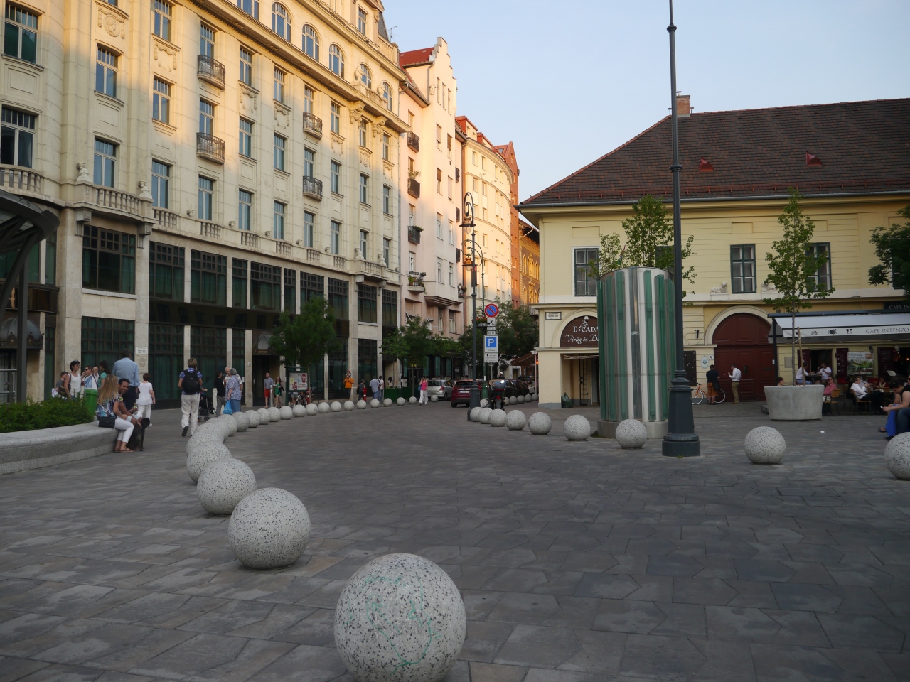ここにメルキュールホテルがあるが、そこの通りを奥に進んで行くとシャレたレストランやカフェがある。お勧めの通りといえる。完全に観光化されておらず、多くのハンガリー人が利用している。その道を進むと別の地下鉄駅に出ます。さらに進んで行くとブダペストの中心街、右方向に進めばアストリア駅です。