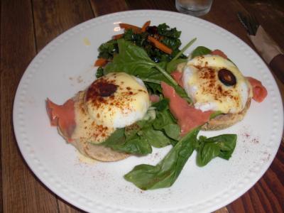 カイマナファームカフェのスモークサーモンエッグベネディクト野菜が豊富で...