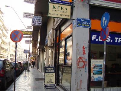 長距離バスのターミナルから出発しますが、ヴォロス市街にも停留所はあります(写真)。