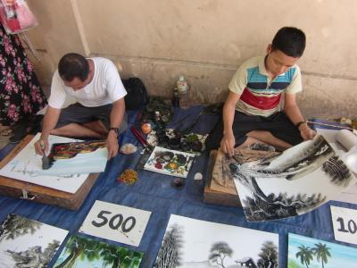 マンダレーのアマラプラにもおんなじ様な絵を描いている人がいます。ぜひ見に行ってみてください。面白いですよ。- 旅行時期