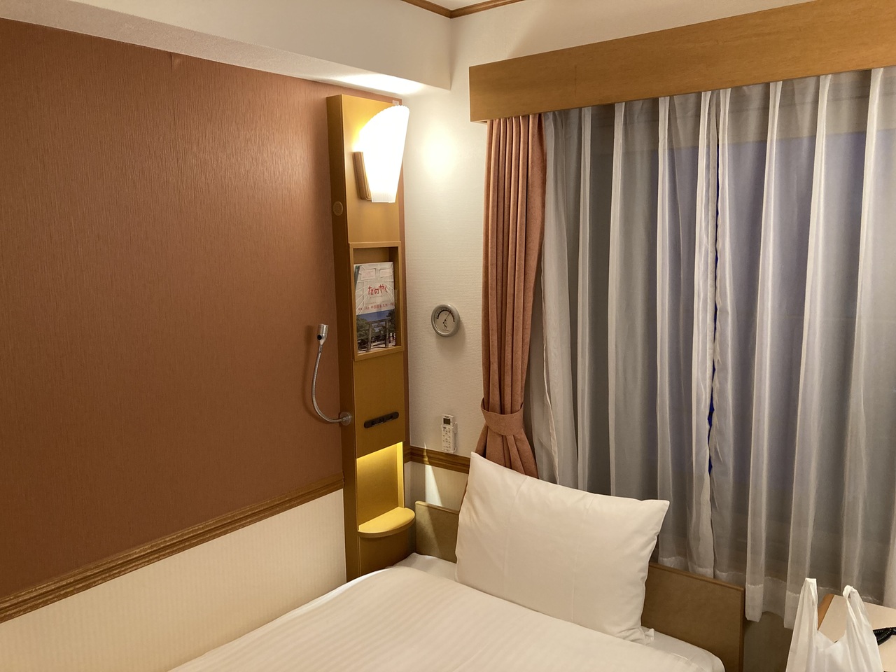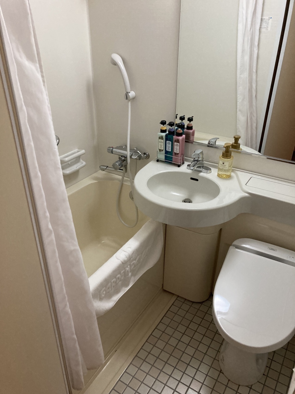 東横イン全般ですが、朝食が付いているので、とてもお得に利用しています。受付も親切な対応でした。客室は、ベッドとベッドの間にトイレ・バスがあるビジネスネスツインでした。- 旅行時期