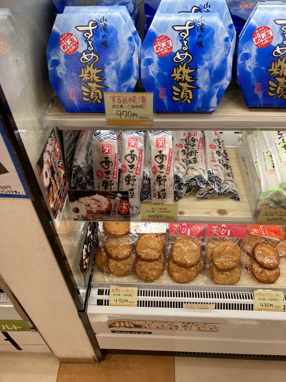 山陰の旅の帰りで米子自動車道の休憩で大山PAに立ち寄りました。当日の天気は曇り空で大山は雲に隠れて見えませんでした。PAの売店はあまり大きくはありませんがホテルの朝食にあった「あご野焼」が売っていたのでお土産に買って帰りました。