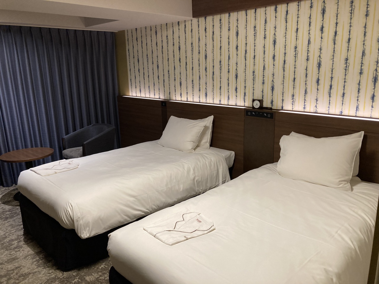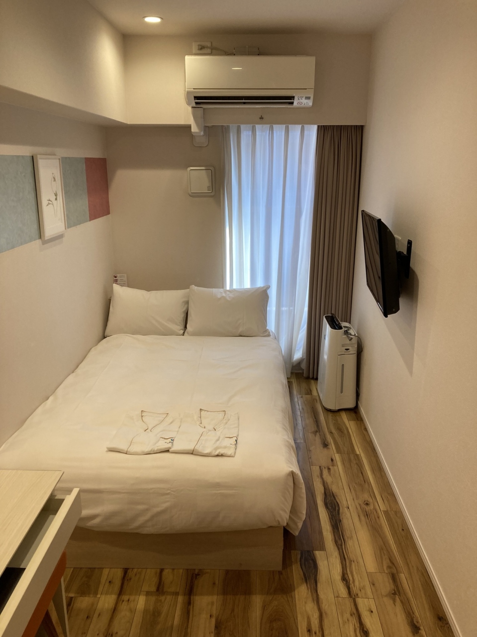 梅田の宿で利用しました。ちょっと駅から離れています。朝ごはんも無料で準備して頂けるので、有り難くいつも美味しく食べています。客室は、ビジネスツインを利用したため、バストイレが共用でベッドが別々の部屋で使い勝手が良いのでよく利用します。