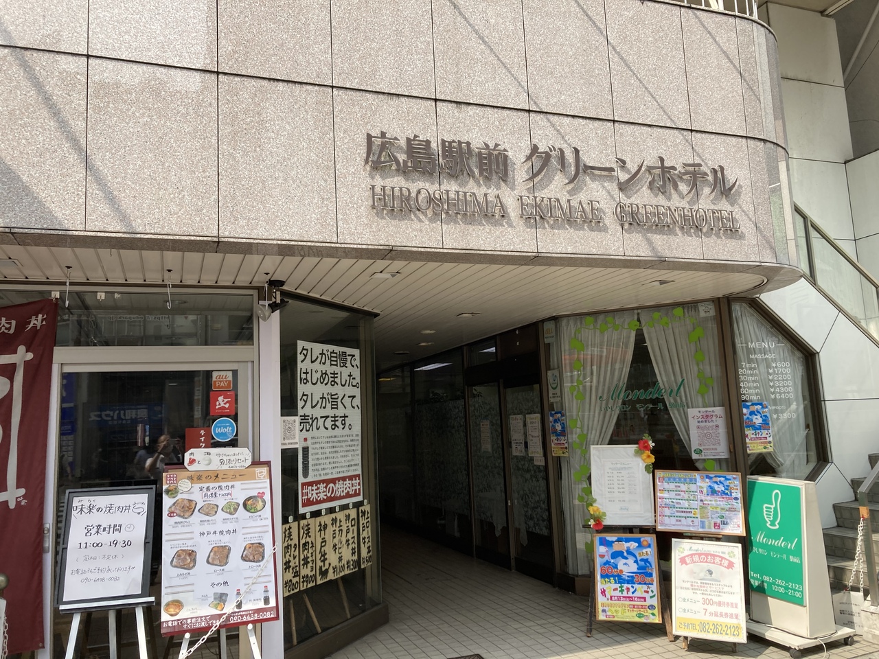 出張で3泊しました。夜遅い新幹線の到着も広島駅前なんで近くてよかったです。部屋は古いですが寝るだけであれば十分です。1階入口にある神戸牛焼肉丼のロース丼がホテル利用者は200円引きになります。ちょっとお得です。