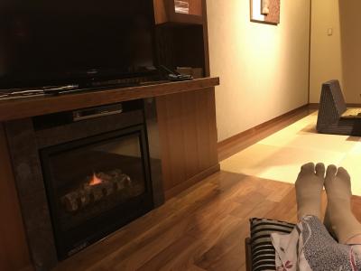 お部屋は55平米と広々しており、温泉かけ流しの客室露天風呂、ダブル洗面ボウル、ガス暖炉、加湿空気清浄機、床暖房、テラス等が設けられており、とっても素敵な空間でした。