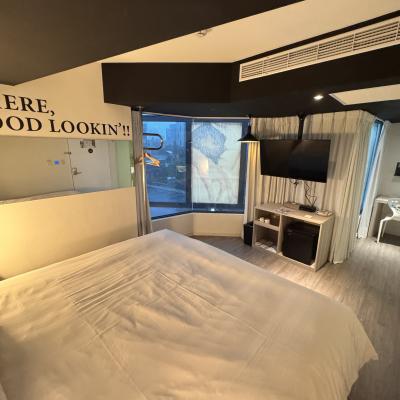 帰国日でしたが、台風直撃でフライトキャンセル、急きょ予約して宿泊しました。美麗島から徒歩5分程度のところにありますパパホエールさん。とても綺麗でデザイン性あってよかったです。暴風雨の中の滞在で、少々軋んでおりましたが安心して過ごせました。