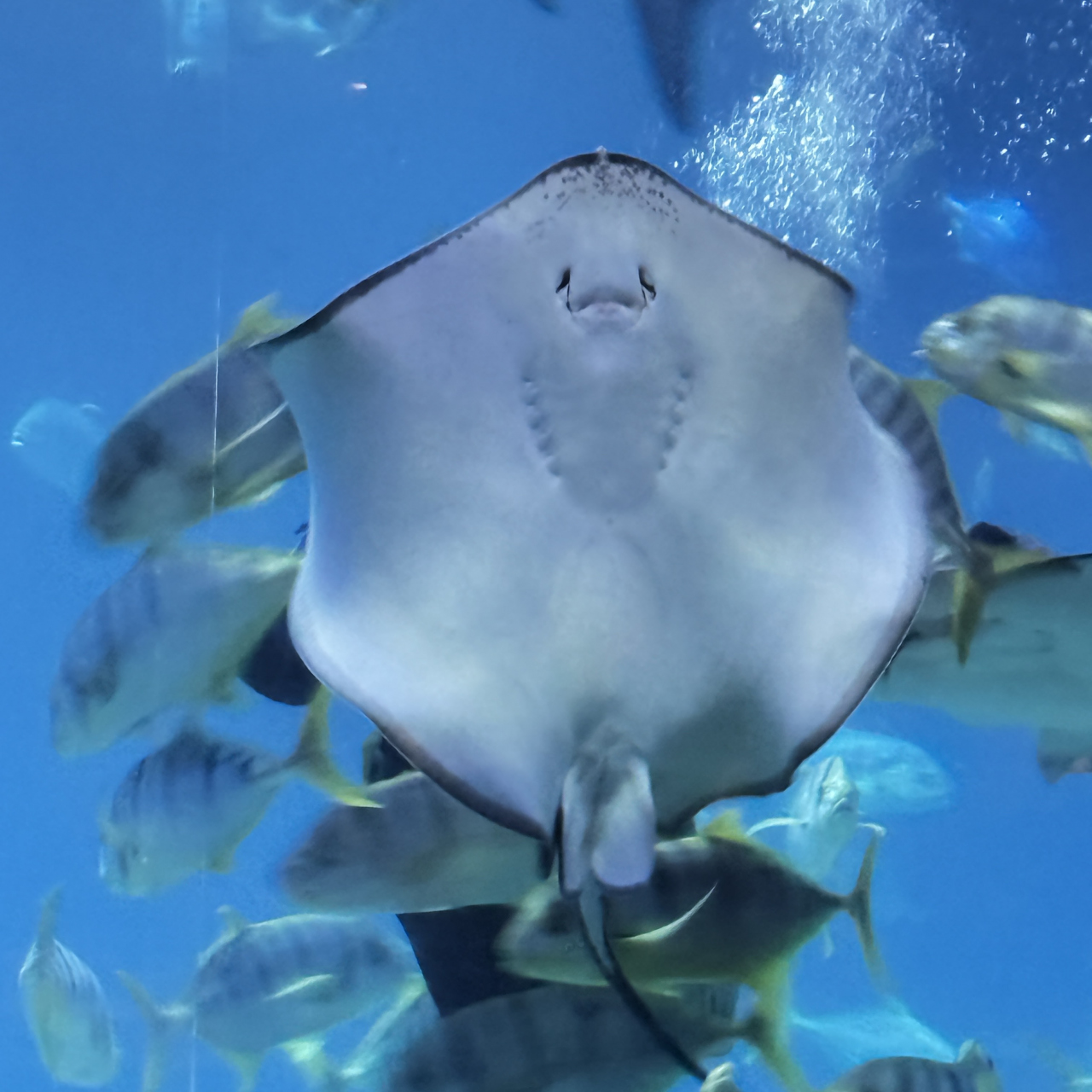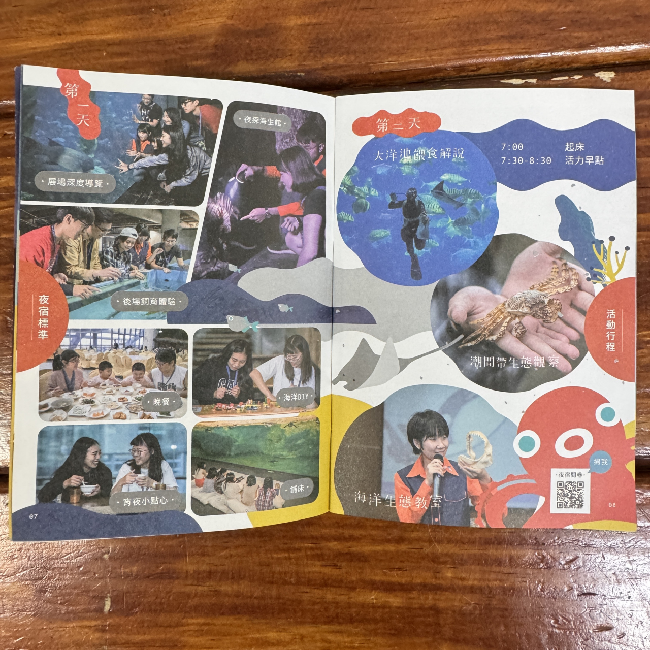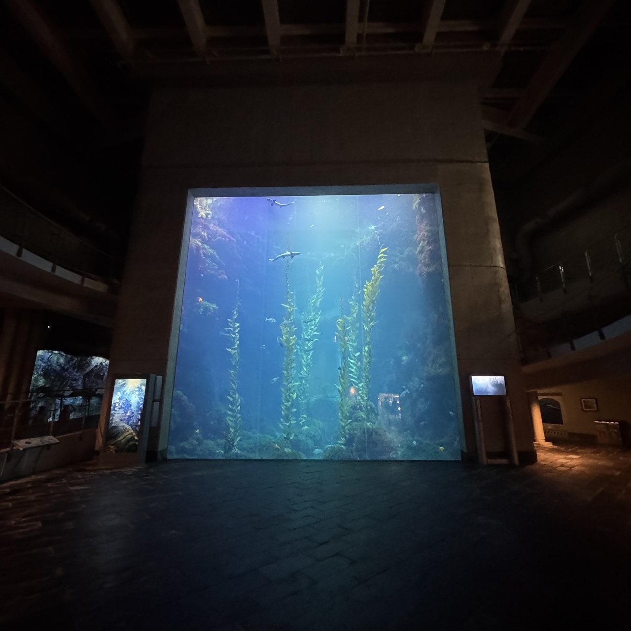 屏東県にある国立海洋生物博物館で宿泊体験してきました。16時にロビーに集合、60名くらいいたでしょうか、各チームごとにスタッフがついて案内開始、オリエンテーションでは布団の敷き方やルールの説明。世界水域エリアで2班、自分は総勢18名のE班。世界水域エリアを解説を聞きながらほぼ9割方いっしょに回ってくれて、日本語ができるZさんが自分一人のために日本語解説をしてくれました。サメ水槽前は10名、知らない方々と布団を並べて就寝。男女子供関係なく朝を迎えます。7時の起床前に目の前の薄暗い水槽を優然と泳ぐ巨大なシュモクザメは圧巻でした。だんだんと陽が昇り差し込む太陽光に輝く魚影が美しかったです。翌日は残念ながら担当が変わり日本語での案内はなく少々戸惑いましたが想定内。都度スマホ翻訳をみせてくれながら対応いただき感謝です。食事は夜朝ともビュッフェで台湾南部の家庭料理なスタイル、バックヤード見学や夜食体験はかけがえのない経験。各種イベントは少々子供向けかな?とも思いましたが、水族館に、巨大な水槽の前で眠る体験は最高でした。