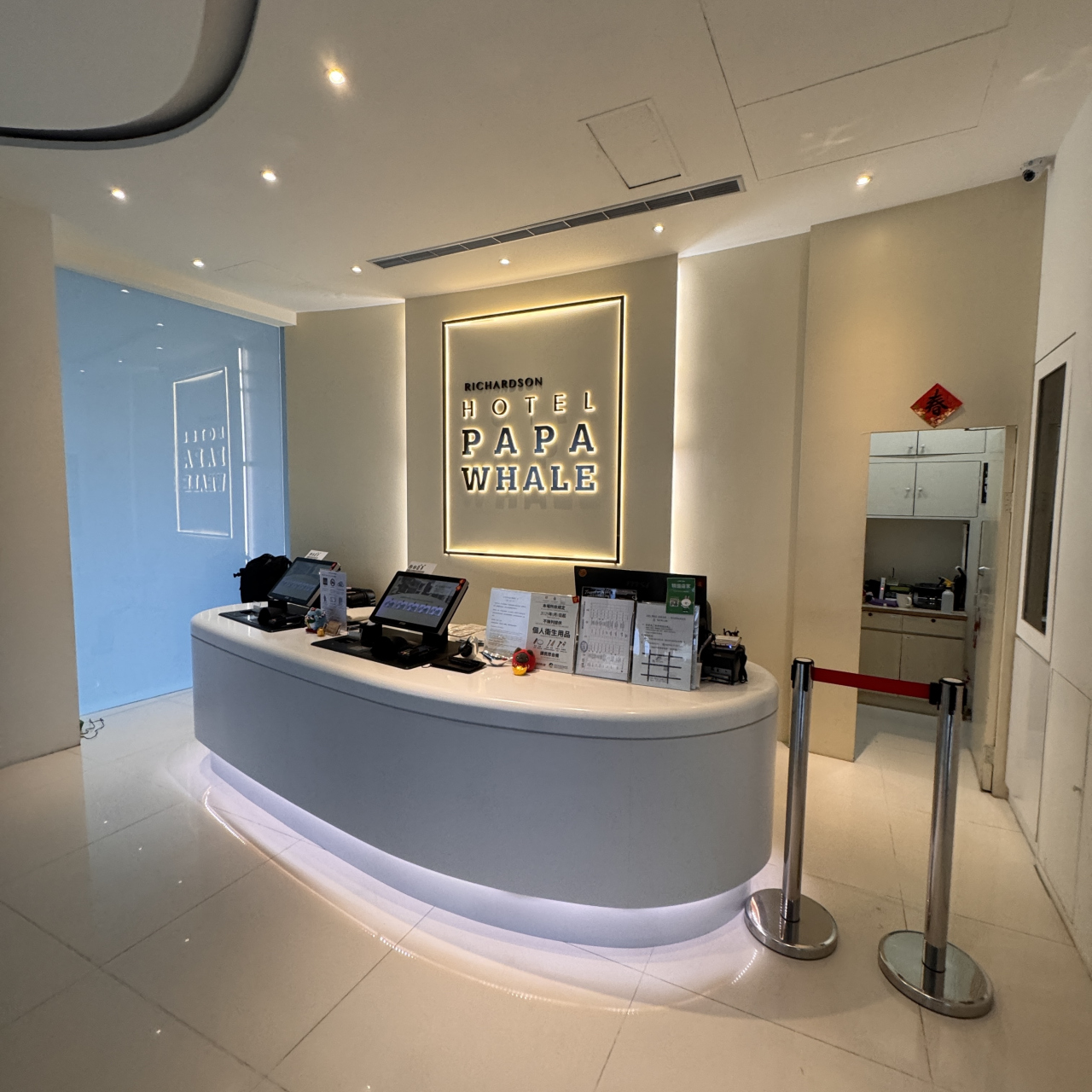 帰国日でしたが、台風直撃でフライトキャンセル、急きょ予約して宿泊しました。美麗島から徒歩5分程度のところにありますパパホエールさん。とても綺麗でデザイン性あってよかったです。暴風雨の中の滞在で、少々軋んでおりましたが安心して過ごせました。