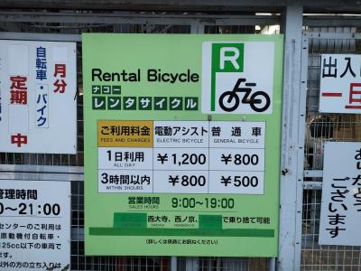 近鉄奈良駅に併設する駐輪場で借りられるレンタサイクル店です。安さを求めると他店のほうが優位ですが、突然でもOKでした。意外に坂道が多い奈良市内ですので、電動アシスト付きが便利。3時間800円でお借りすることが出来ました。