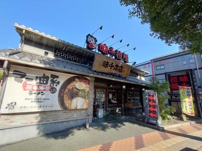 熊本市内から路面電車で数十分、八丁馬場駅で降り、熊本県庁前まで少々歩き、ワンピースのルフィー像があるイチョウ並木の東側にあります味千拉麺本店さん。中国広州南駅に続いて2店舗目は本店に。味千と言えば黒マー油ということで、こってり豚骨と黒マー油、それぞれでも、混ぜ合わさっての味変も楽しめて、細麺との相性良く美味しくいただけました。