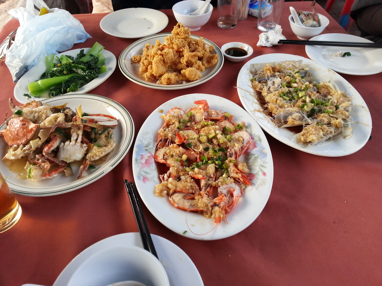 2013年、友人は香港に来て、私は彼女を連れて長洲という離島へ遊びに行きました。昼御飯はせっかくの離島の日ですから、海鮮料理にしました。海鮮5種類に野菜の炒め(野菜はサービス)って日本円だと3000円程でした! 私達は3人でから、一人当たり1000円でした。びっくりしました。値段は安いものの、全ての料理も旨かったです!