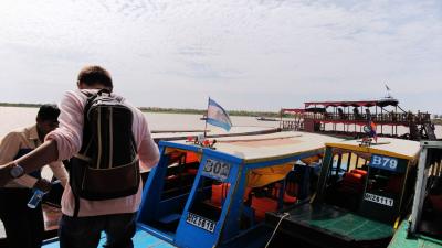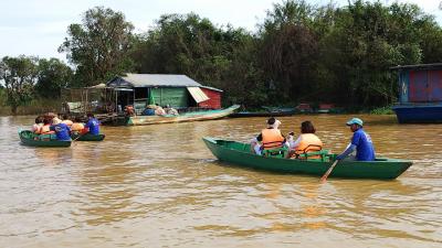 トゥクトゥクでトンレサップ湖に到着し乗船です。ガイドさんと3人で貸切で...