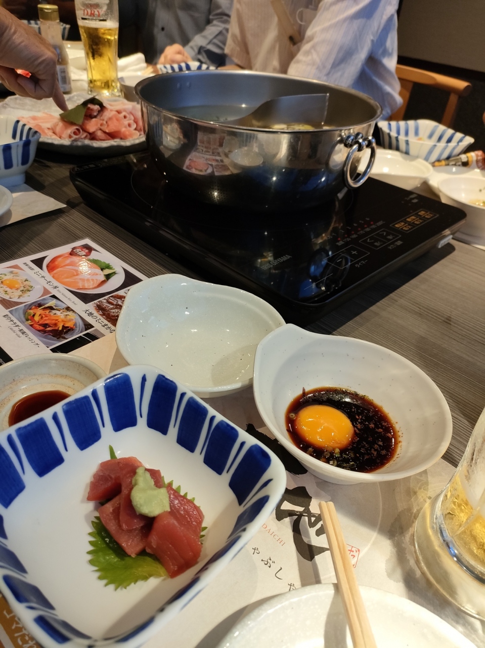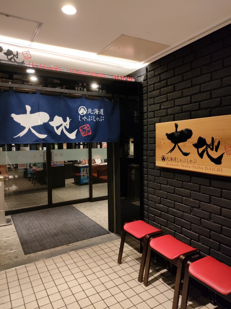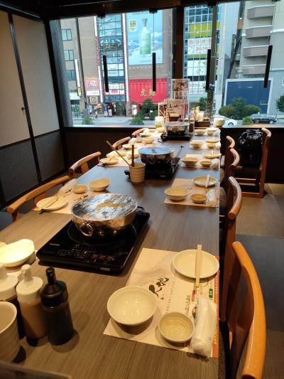 ススキノの第3グリーンビル2階にある大箱居酒屋「北海道しゃぶしゃぶ大地」は、仕切られた鍋に入った2種類のスープで、豚と羊肉の両方を頂くことができる。