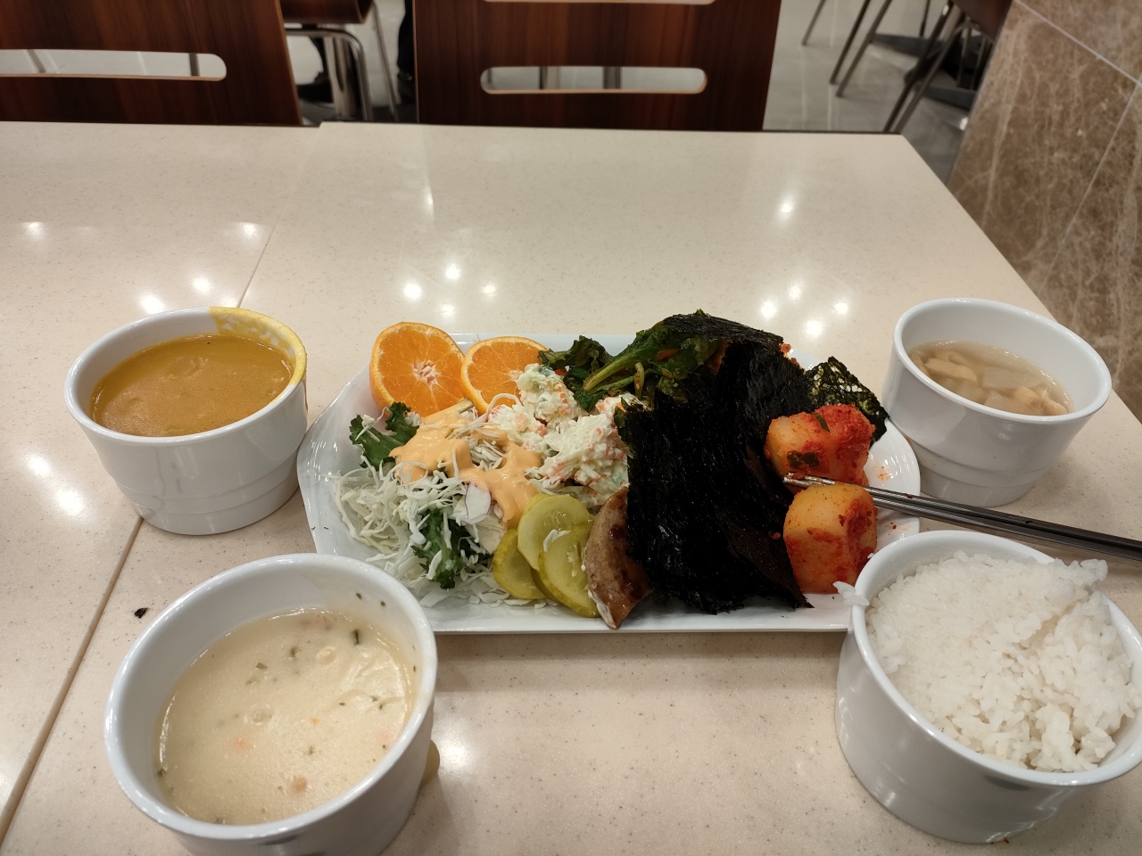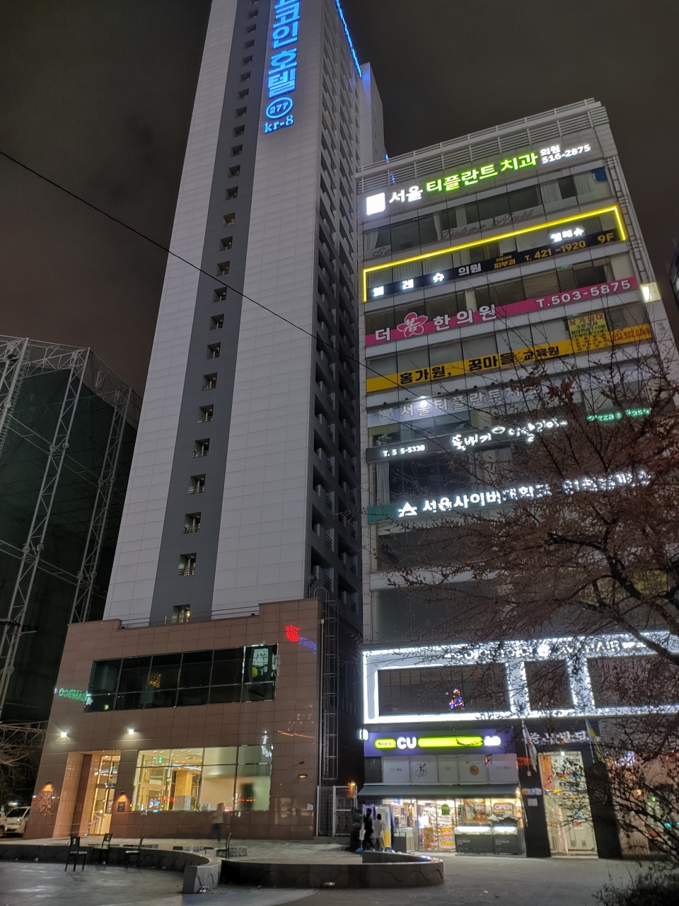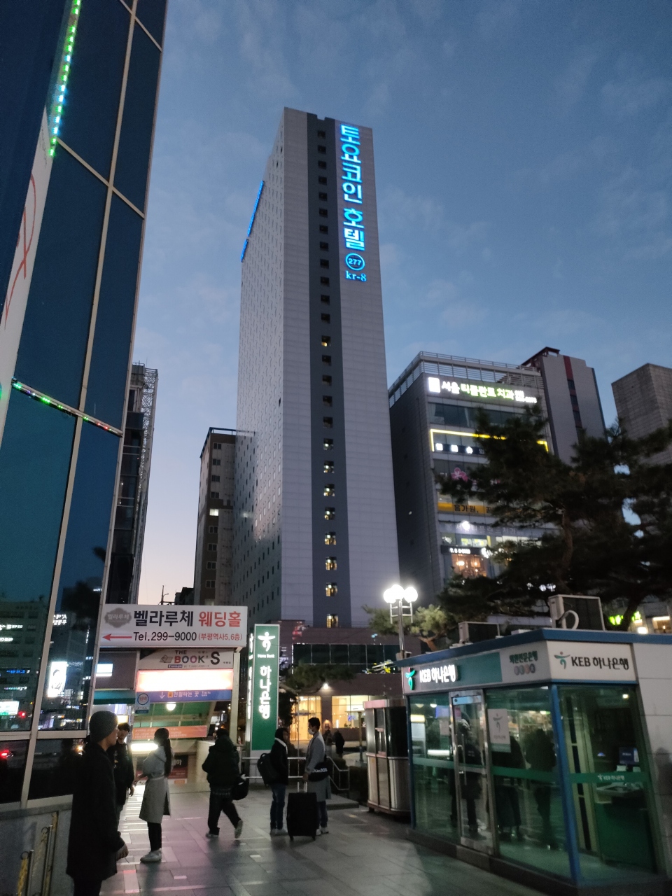 時期的に雪が舞う日がありましたが、ホテルの前から地下に入ることができ、ロッテマートやロッテマートの地下のフードコートでビールを飲みながら食事をすることができる。- 旅行時期