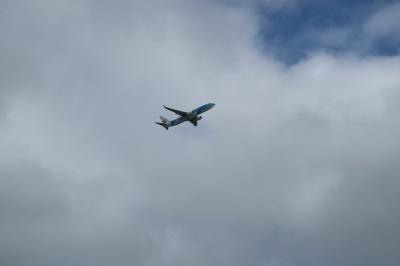 ホテルに近い高台から真上を通る那覇空港から飛び立つ飛行機と青い海を暫し眺めていた。
