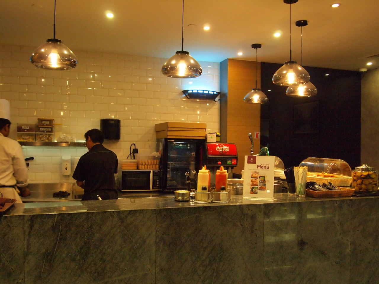 PとQエリアにあるラウンジと比べるとスペースは、狭いものの暖かいホットドッグ、麺類の提供が有るのがやや良かった点です。- 旅行時期