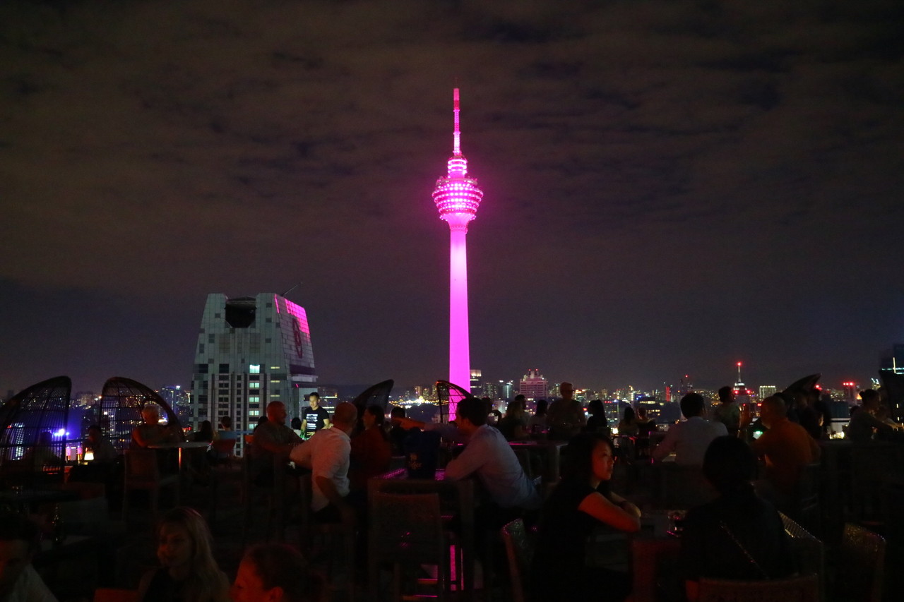 ラジャチュラン駅近くのオフィスビルの屋上にあるバーで、安くペトロナスツインタワーとクアラルンプールタワーの両方を眺めることが出来る。