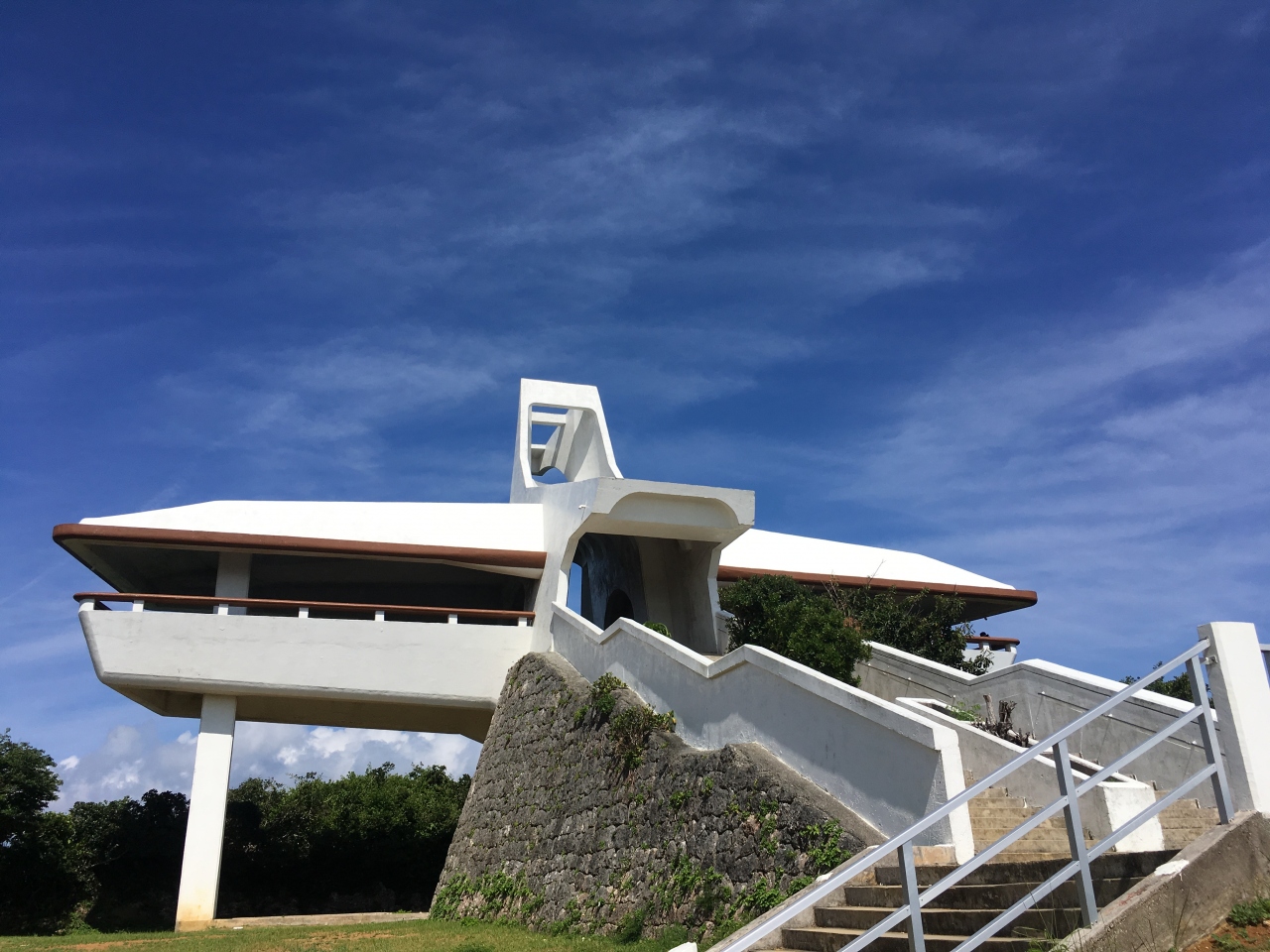 階段を上がり先にある展望台のスペースは小さいですが、池間島が見えました。