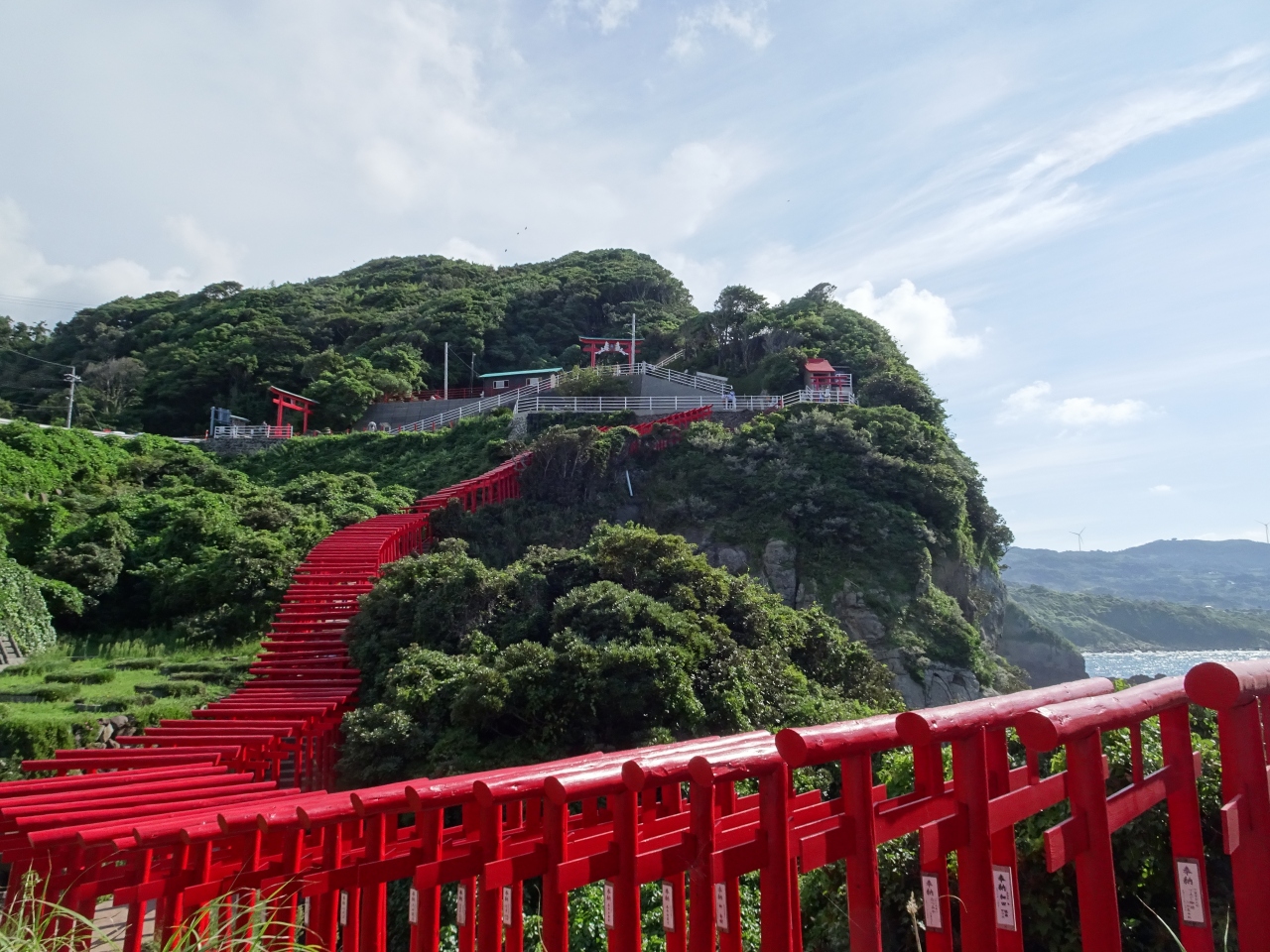百本鳥居ともいわれる元乃隅神社です。赤い鳥居が数多くあり、圧巻です。境内から海岸の方に向かう形で鳥居が連なっています。赤い鳥居と海の青がよく映える観光スポットです。海岸近くにある神社のため、駐車場はありますが、大きくはないので、混雑覚悟で訪問した方がいいです。