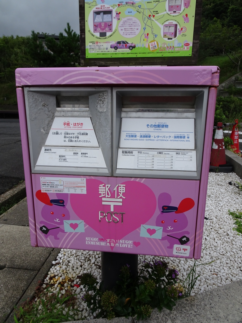 白兎神社や白兎海岸の近くにある道の駅です。神社を利用する方がついでに訪問するようなスポットです。お土産などの種類は多くなく、道の駅をメインとした利用ではなく、観光ついでがお勧めです。縁結びのうさぎの神話が有名なエリアのため、模したポストがあります。