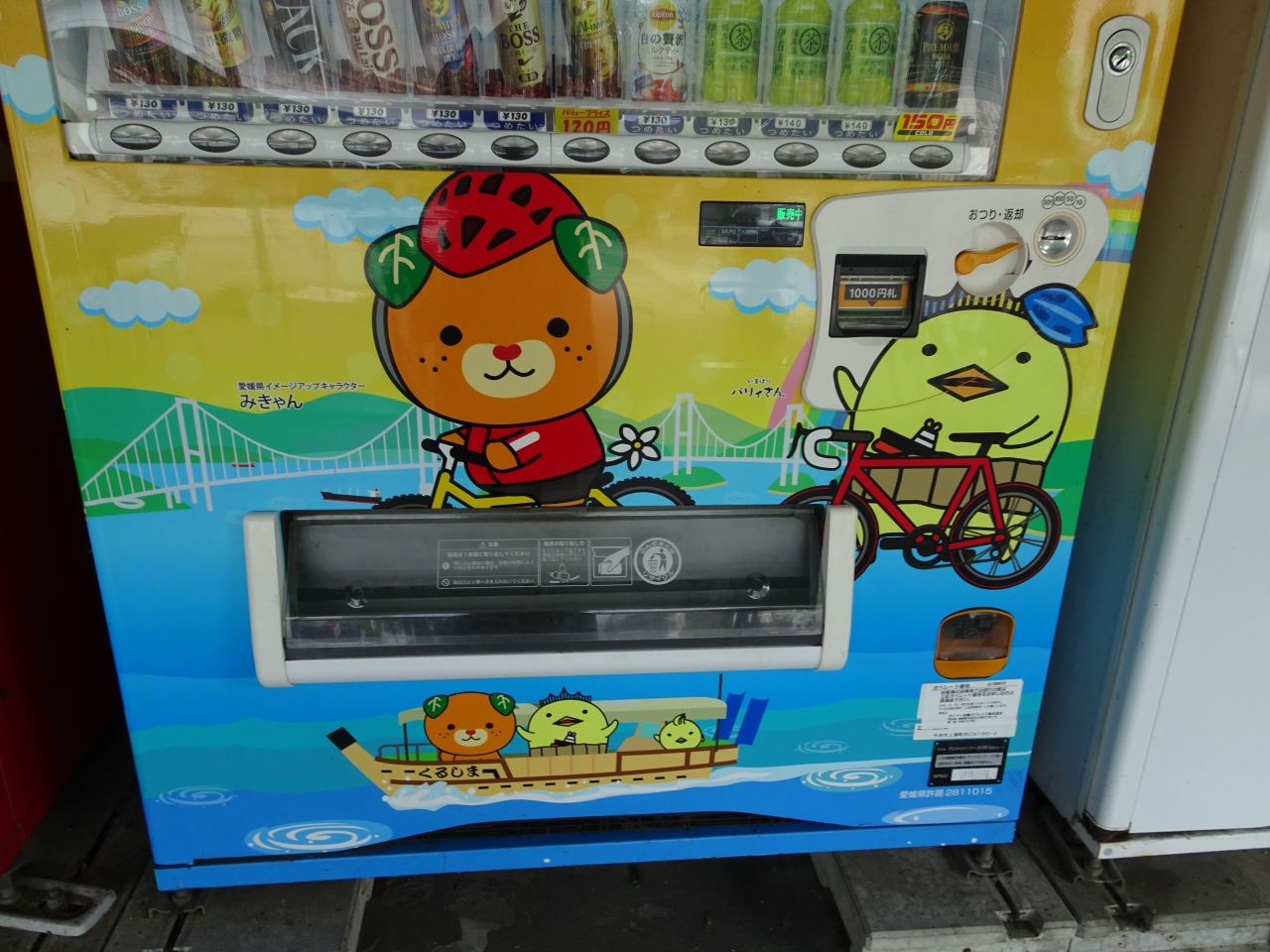 しまなみ街道の多々羅大橋の近くにある道の駅のため、橋が綺麗に見ることができます。自動販売機が特徴的で、愛媛のゆるキャラであるみきゃんがデザインされた販売機が設置されていました。お土産も販売されています。