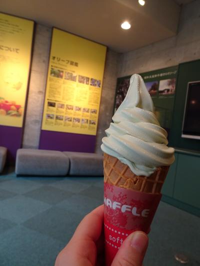 オリーブの木がたくさん植えてある道の駅です。映画の撮影地に近いようで主人公の気分になれるような仕掛けがあり、観光客に人気で混雑しています。建物がある中心施設の回りには駐車場が少なく、満車だと少し離れた場所になってしまいます。