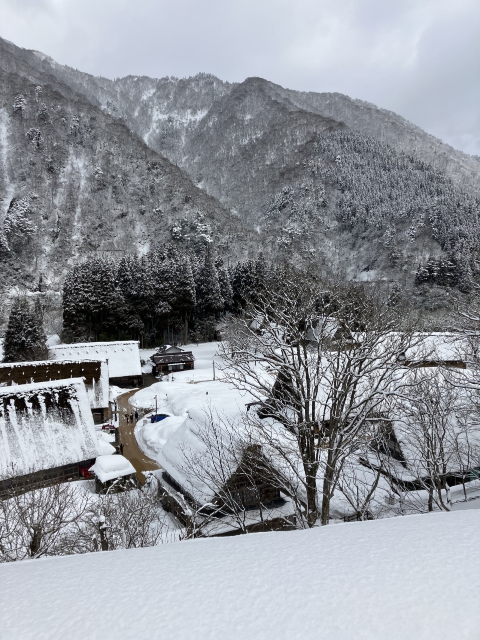 駐車場から少し歩くと展望エリアがあります。道路は高い位置にあるため、集落を見下ろすようなかたちで鑑賞する事ができます。雪の積もっている時期に伺ったため、屋根に雪があり、とても綺麗でした。駐車場にはトイレがあります。