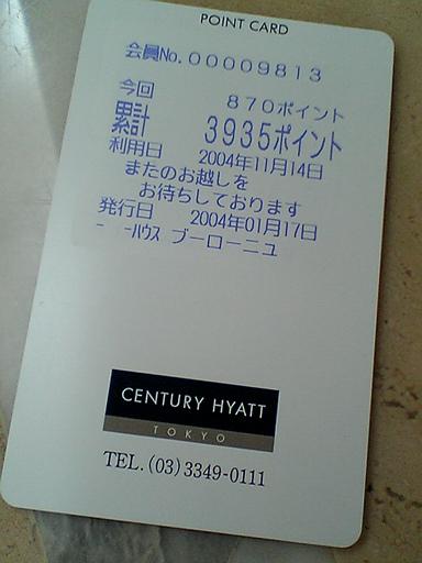 家が近いということもあり、よく1Fのビュッフェに行きます。ハイアットではお得な会員カード(入会、年会費無料)があり、ポイントを貯める事が出来ます。貯めたポイントは、ベーカリーや、レストラン、ホテル宿泊の際などに利用できますのでとってもお得です!是非、ハイアットに行った際には作ってみては如何でしょうか?1年間使用しないと失効してしまいます。最後に使った日が印字されますので、その日付から1年が過ぎる前にいけばOKです。