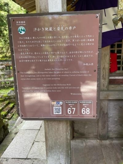 奥の院「中の橋」の近くにあります。小さなお堂の中にお地蔵さんが祀られています。このお地蔵さんを見るといつも汗をかいているように見えるので、「汗かき地蔵」と呼ばれています。隣には「姿見の井戸」があります。これも「こうや七不思議」の一つです。