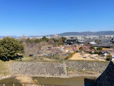 郡山城の天守台は本丸の北端部に位置します。天守台の標高は81mで、市民誰もが気軽に登り、眺望を楽しみ、歴史を体感できる場として、また観桜の名所として市民に親しまれてきました。展望施設からは、大和郡山のまちなみとともに、平城京大極殿・薬師寺・若草山までのぞむことができます