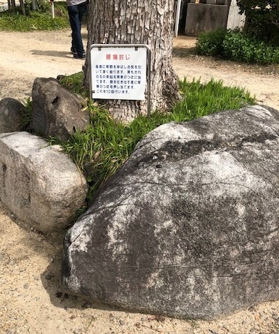 愛染さんにある人気の腰痛封じの石です。この石に座ると腰の痛みがなくなると伝えられています。背筋を伸ばし、お尻を引いてこの石に深く座り、背もたれの突起に背骨のツボを当てながら呼吸をすれば腰痛封じに効果があるとされています。隠れたパワースポットです。