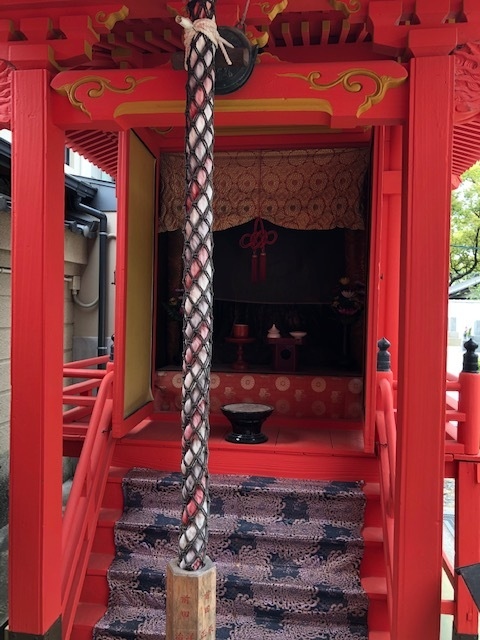 少彦名神(すくなひこなのかみ)、菅原道真を祀る古社です。境内には、道真も口にしたといわれる天王寺七名水のひとつ「かんしづめ(癇鎮め)の井」のほか、大坂夏の陣で徳川方に討たれて戦死した真田幸村の記念碑が建てられています。