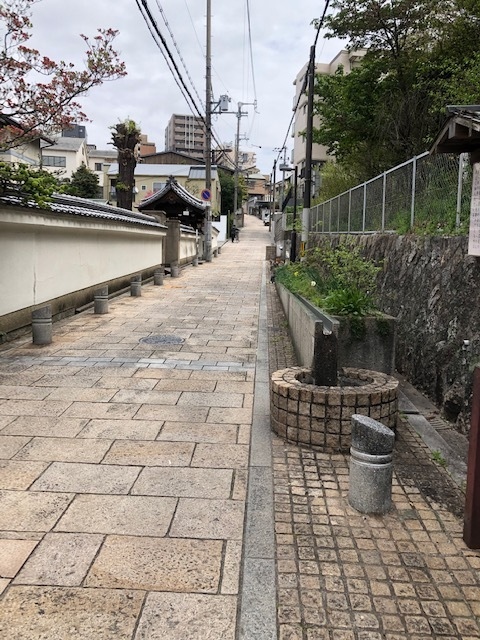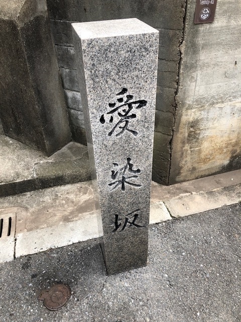 近くにある愛染堂から名づけられた坂で、天王寺七坂の一つに数えられています。上町台地の西端に位置するこの辺りは夕陽ケ丘と呼ばれ、隣にある大江神社の境内からみる夕日は美しいです。境内には芭蕉が詠んだ夕日の句碑があります。この坂を下っていくと清水寺、安居神社に通じます。