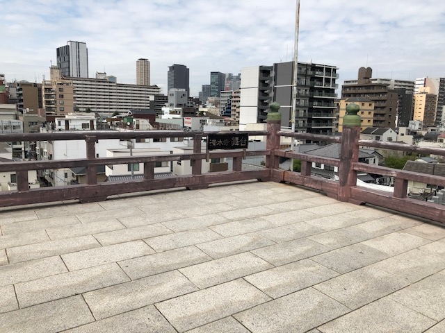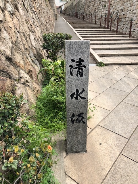 愛染坂を下ってしばらく歩くと、緩やかな石段でできた五つ目の坂、清水坂が見えてきます。 清水坂は新清水清光院に登る坂道で、高台にある新清水寺境内からの眺望は格別で、京都の清水の舞台を模した舞台があります。