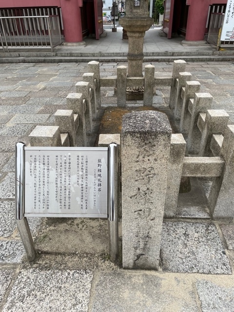 南大門をくぐると熊野(くまの)権現(ごんげん)礼拝(らいはい)石(せき)が玉垣内に鎮座している。往古より熊野詣する人たちはまずこの場所にて熊野を遥拝し、道中の安全を祈り、熊野街道を南へと向かったと言われている。