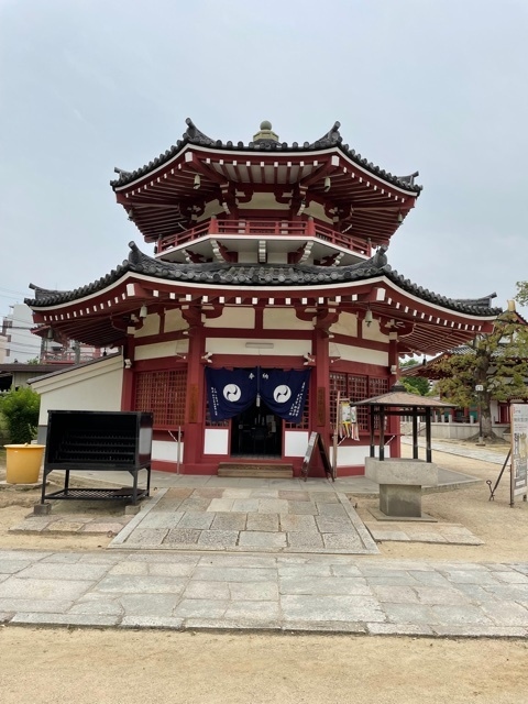 南大門から入り、右側に行くと六角形の鐘楼があります。南鐘楼とも鯨鐘楼とも呼ばれています。六角形、2層のお堂で2階には鐘が置かれている。ここの鐘の音が毎月21日に聖徳太子の御霊を引導鐘によってお慰めしています。