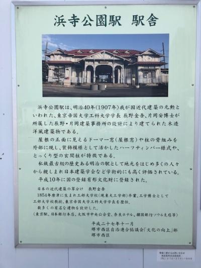 南海本線浜寺公園に残る木造のレトロな駅舎です。明治40年に建てられ屋根のドーマ窓が特徴です。現在は使われていませんが、ギャラリーとカフェとして保存されています。学術的にも評価され、国の登録有形文化財に登録されている。