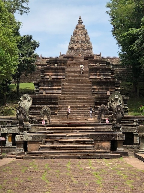 スリンのホテルからタクシーをチャーターしてムアンタム遺跡とパノムルン遺跡をセットで廻るのがいいと思います。パノムルン遺跡はタイに残るクメール遺跡としては規模も大きく、保存状態も良好と言われています。下から神殿までは一直線に階段が続いています。
