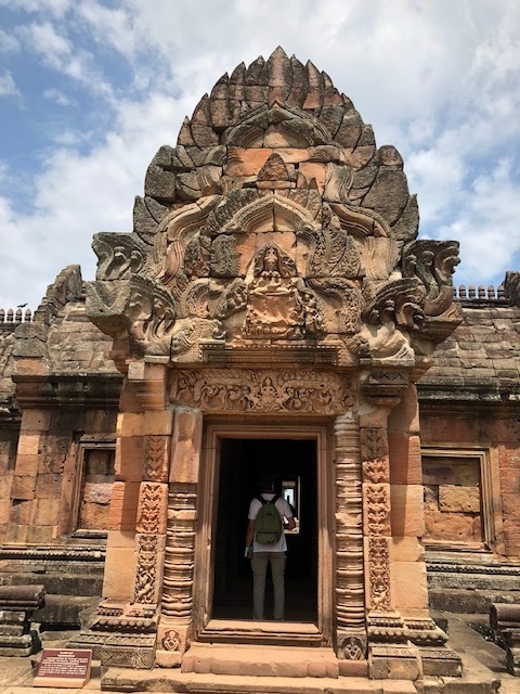 ムアンタムとは、タイ語で「下の町」という意味で、クメール語で「大きな丘」という意味のパノムルン(พนมรุ้ง)に対してこのような名前とのこと。ムアンタム遺跡は、11世紀に建設されたバプーオン様式の寺院です。寺院入り口から奥の出口まで、1,000年以上経った今でも歪むこと無い高い建築技術で建設されています。